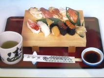 地元特選のネタを使った寿司(トロ、ボタンエビ、ウニ、ツブ、オヒョウ)など